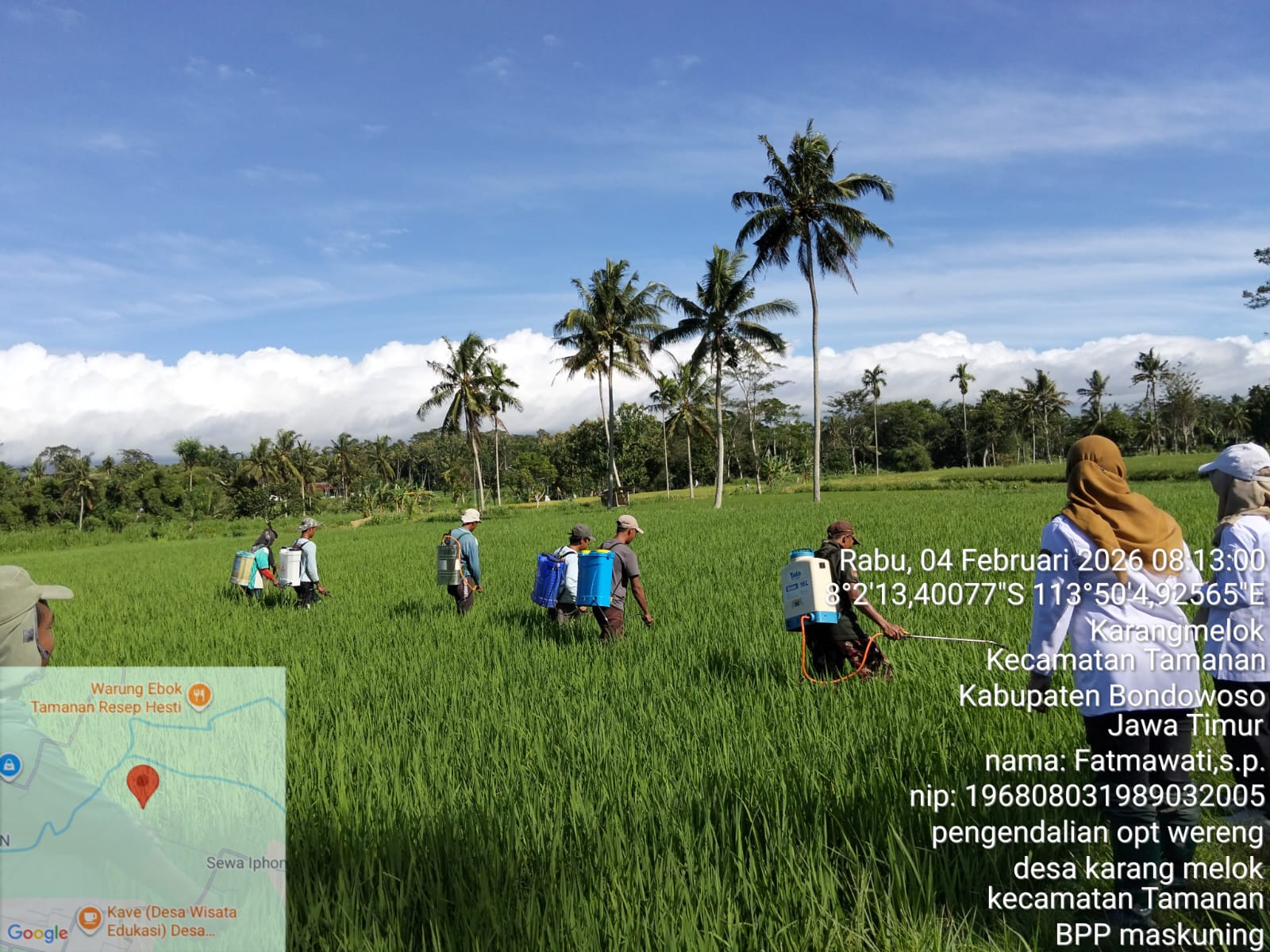 Dalam upaya melindungi tanaman padi dari serangan organisme pengganggu tanaman (OPT), khususnya wereng coklat, telah dilaksanakan Gerakan Pengendalian OPT Wereng Coklat di lahan pertanian Kelompok Tani Karya Tani 6, Desa Karang Melok, Kecamatan Tamanan.