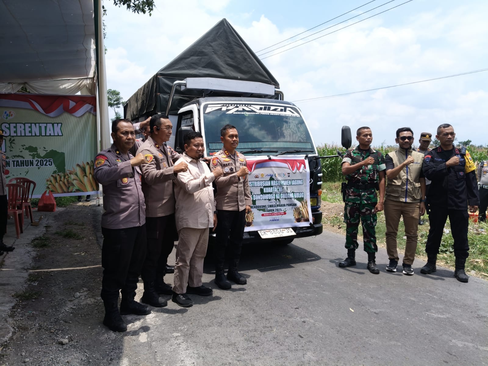 Usai prosesi panen raya secara simbolis, acara dilanjutkan dengan pelepasan distribusi hasil panen jagung Kuartal III. Wakil Bupati bersama Kapolres Bondowoso secara langsung melepas armada distribusi yang akan menyalurkan hasil panen. Langkah distribusi ini memiliki peran krusial untuk memastikan ketersediaan jagung dapat segera dimanfaatkan, baik untuk kebutuhan lokal maupun memperkuat pasokan pangan nasional.